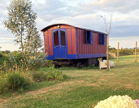 Il y eut d’abord la GITANE, inspirée de l’authentique roulotte tzigane, puis la CIRCUS, la roulotte de cirque, ensuite la MAGIC , où le lapin blanc d’Alice est roi et dernièrement nous avons accueilli celle qui fêtera bientôt ses 100 printemps, la roulotte POP.
